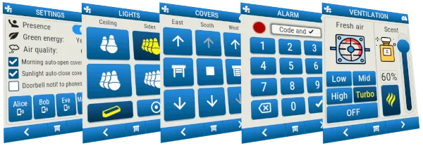For interactivity, a Touchscreen (capacitive highly preferred), a Rotary Encoder or a custom keypad made up from discrete Binary Sensors can be used.