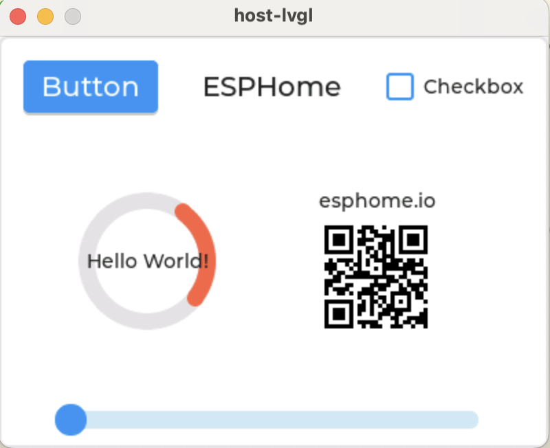 Section titled “Basics”In LVGL, graphical elements like buttons, labels, sliders, etc. are called widgets or objects. See Widgets for a complete list of widgets supported within ESPHome. Not all LVGL widgets are implemented, just those commonly used to support home automation needs/tasks.